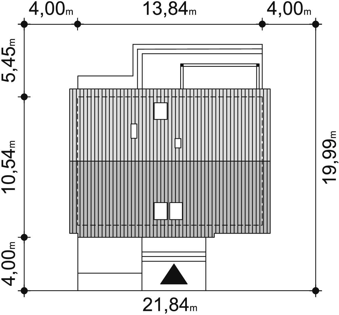 • Konstrukcja budynku - Pliki PDF: Rzut fundamentów, Rzut stropu, Rzut więźby dachowej.