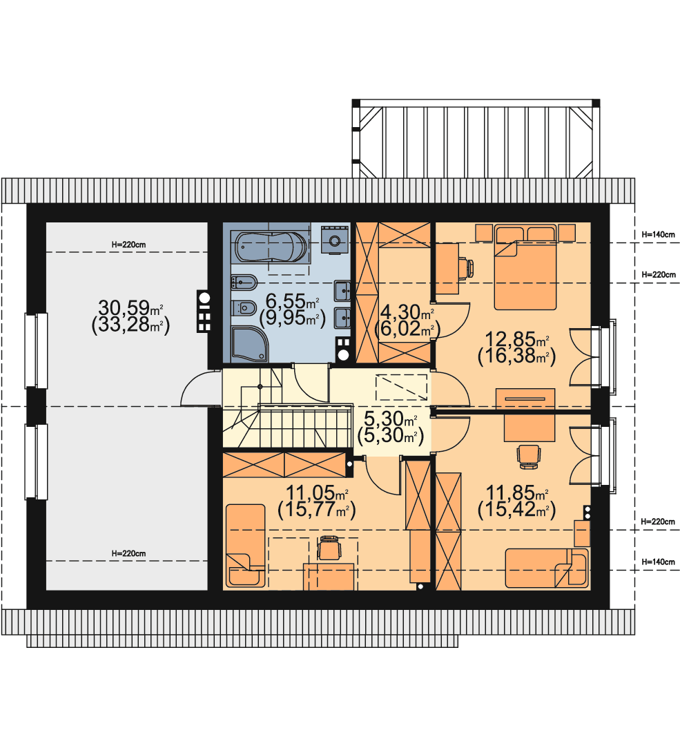 2.7 Strych 30,59m² (33,28m²)