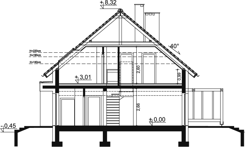 • Ściany zewnętrzne dwuwarstwowe z betonu komórkowego 24cm + 20cm styropianu.