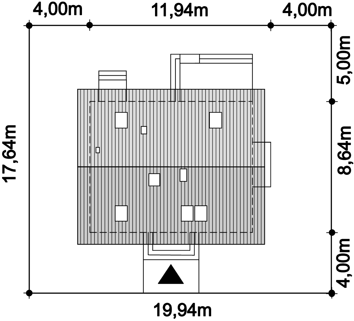 • Konstrukcja budynku - Pliki PDF: Rzut fundamentów, Rzut stropu, Rzut więźby dachowej.