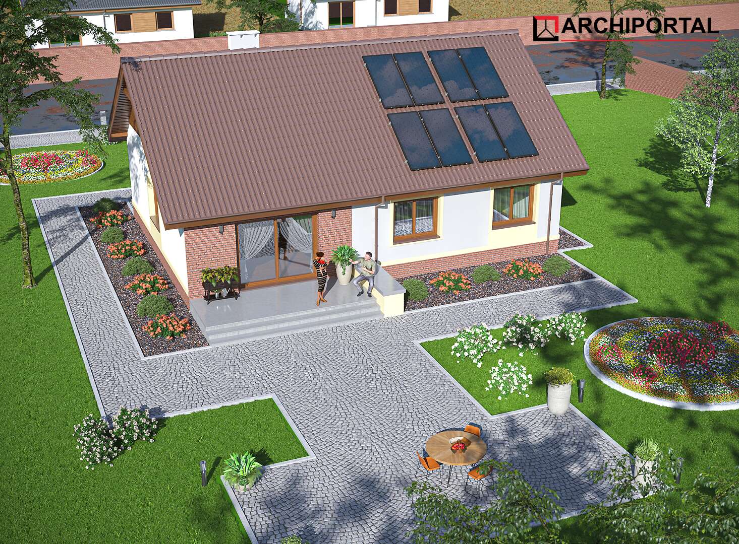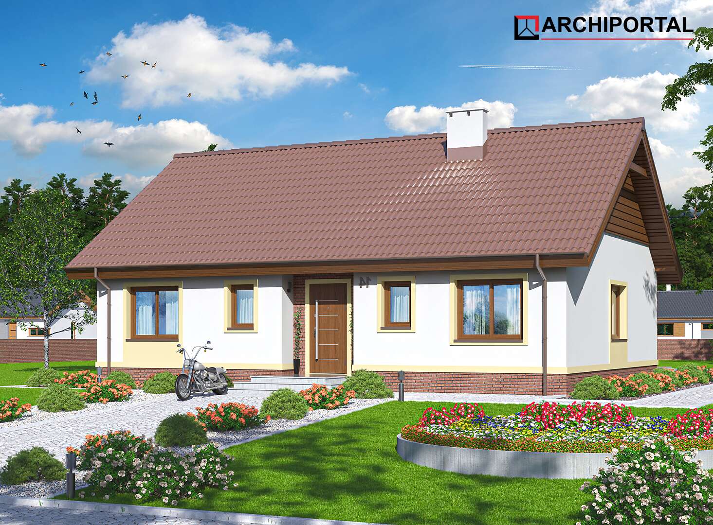 Uwaga! Dokumentacja Projektowa nie zawiera elementów małej architektury takich jak: donice, podesty, altany, grille ogrodowe, murki, pergole, a także innych elementów wizualizacji, takich jak: garaże i wiaty wolnostojące, drogi, podjazdy, ogrodzenia, baseny itp.