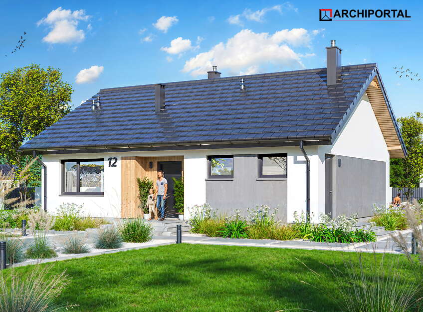 Nowoczesny dom parterowy w stylu współczesnym z dachem dwuspadowym, łączący elegancję z funkcjonalnością. Dzięki optymalnej organizacji przestrzeni w budynku zmieściły się: duży salon z otwartą kuchnią i praktyczną spiżarnią, dwa ustawne pokoje, łazienka z miejscem na wannę i prysznic, kotłownia, dodatkowa toaleta, pralnia i wiatrołap. W kotłowni z bezpośrednim wyjściem na zewnątrz zaprojektowano dwa rodzaje ogrzewania: na paliwo stałe - BIOMASĘ oraz przy pomocy POMPY CIEPŁA. Inwestor ma w ten sposób wybór i może zdecydować, które ogrzewania zastosować w swoim domu. Pakiet z pompą ciepła zawiera dodatkowo projekt ogrzewania podłogowego oraz projekt instalacji fotowoltaicznej. W budynku zaprojektowano także schody opuszczane, prowadzące na niewielki stryszek, który może posłużyć za dodatkową przestrzeń do przechowywania. Nieskomplikowana bryła oraz prosta konstrukcja dachu i stropu wpłyną niewątpliwie na niskie koszty budowy oraz późniejszej eksploatacji. Przy projektowaniu domu TANIA 4 nie zapomnieliśmy o ekologii. Dokumentacja projektowa zawiera dodatkowo wentylację mechaniczną, a dzięki zastosowanym materiałom cały budynek ma minimalny wpływ na środowisko naturalne i spełnia wszystkie rygorystyczne wymogi współczesnego projektowania.