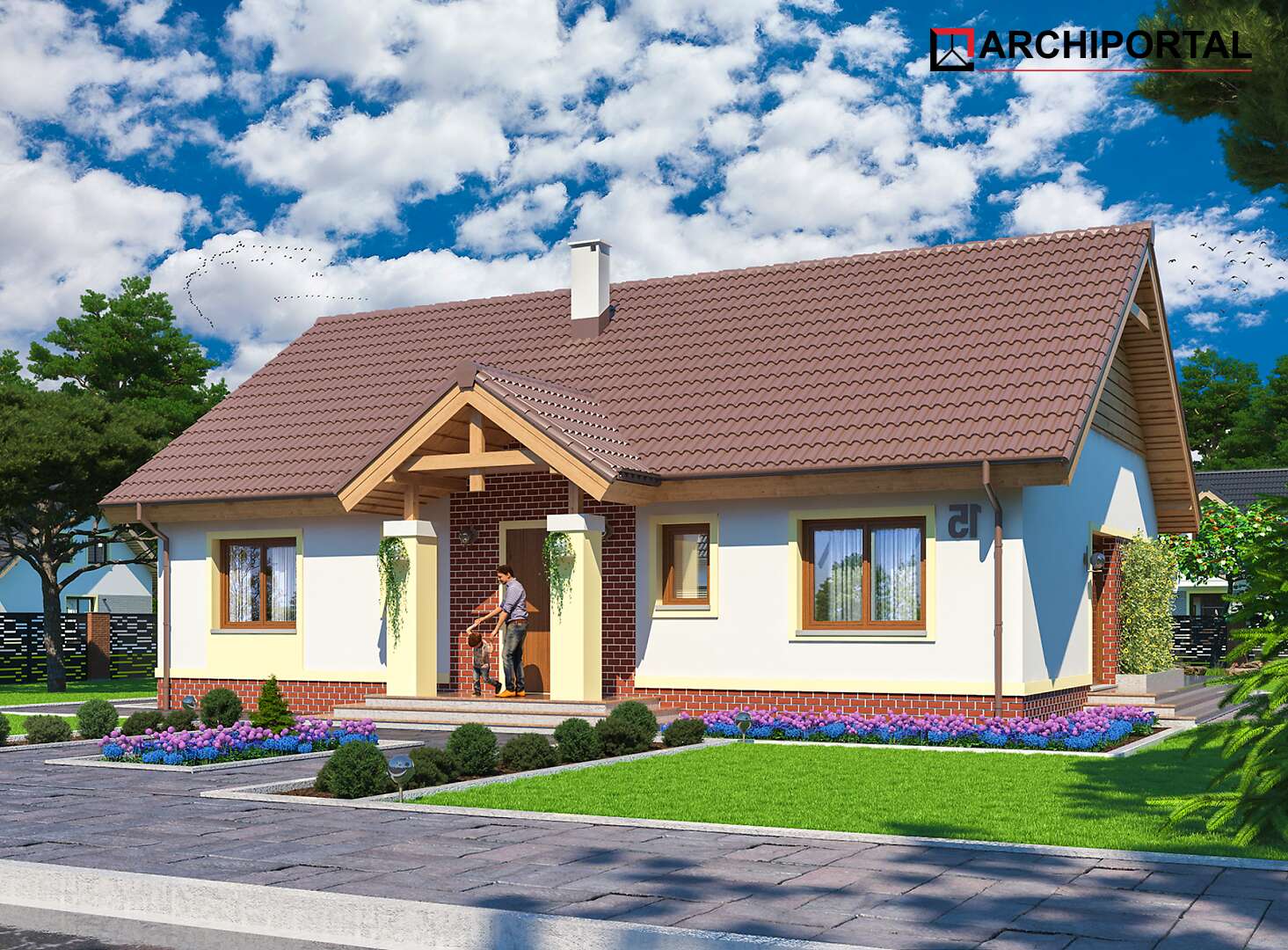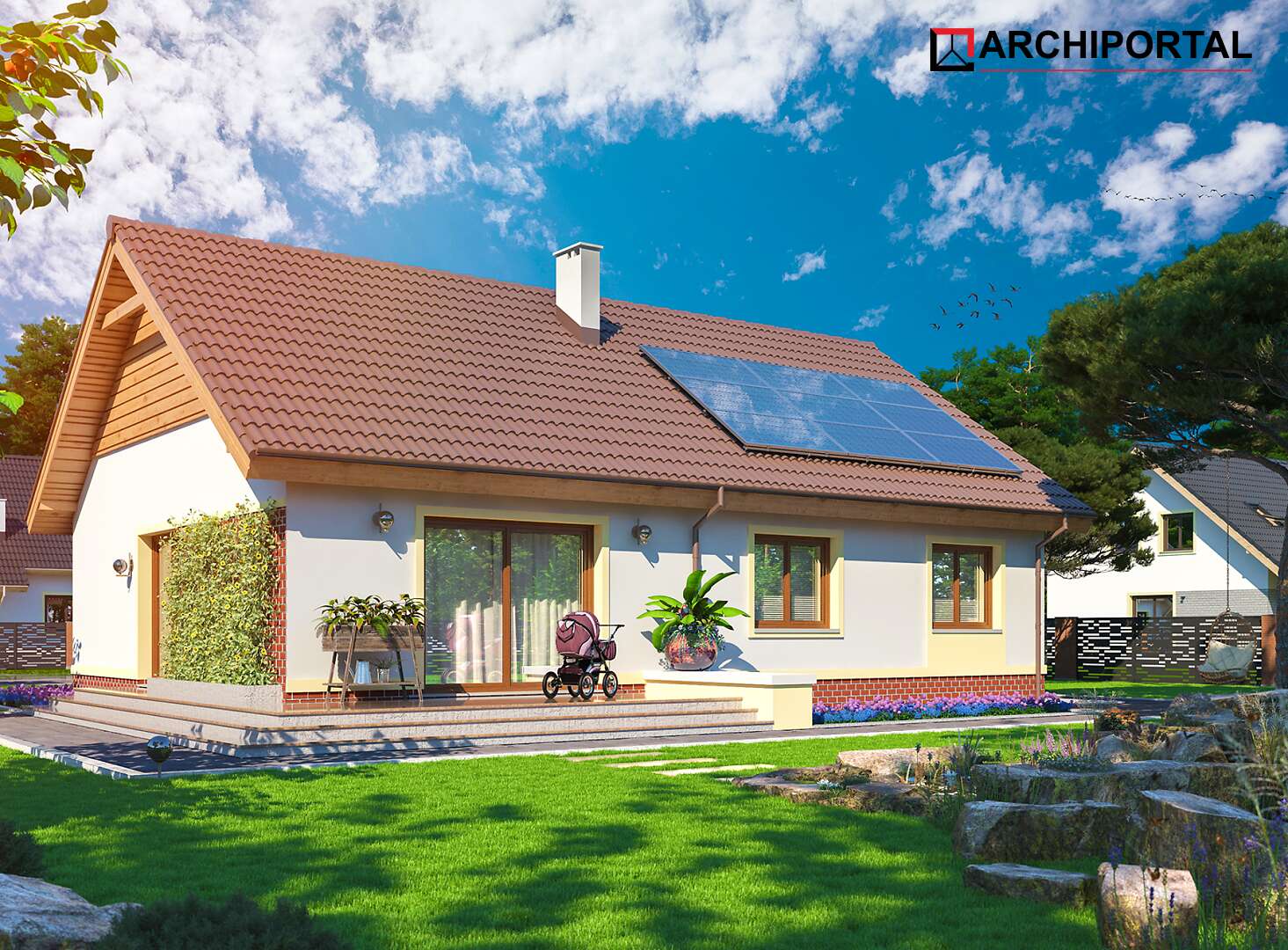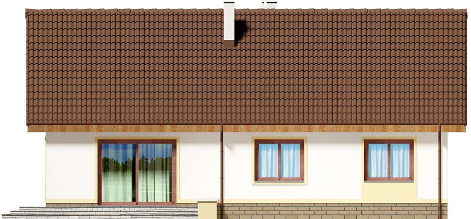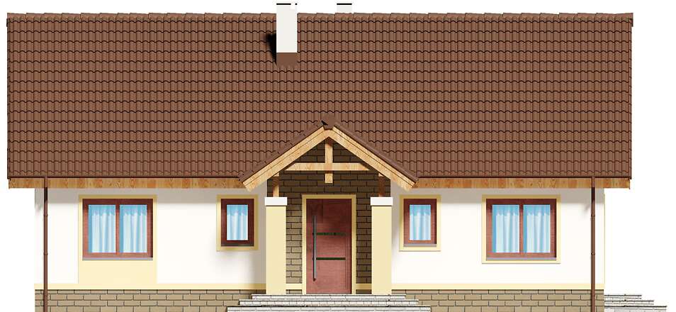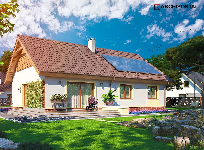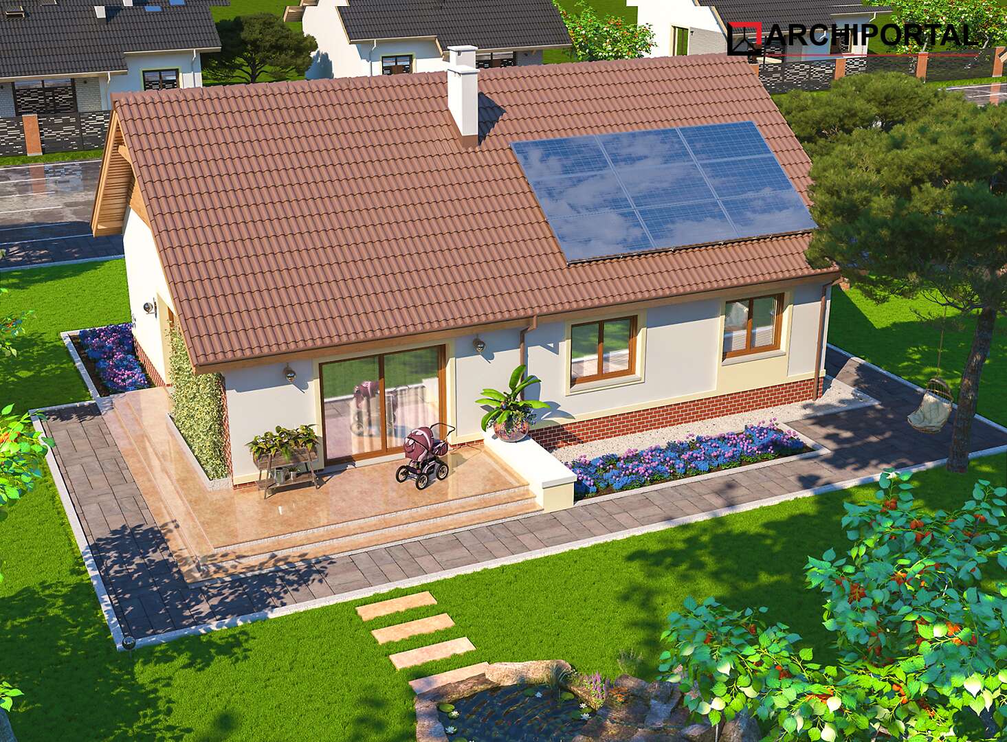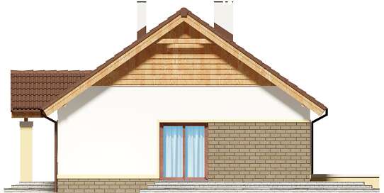 Prosty, parterowy i funkcjonalny dom z możliwością adaptacji poddasza. Wnętrze podzielono na 3 strefy. Strefa dzienna to duży, dobrze oświetlony salon połączony z otwartą kuchnią, którą w razie potrzeby możny oddzielić ścianką działową. Z pokoju dziennego na zewnątrz prowadzą dwa wyjścia – bezpośrednio na ogród i drugie, zaraz przy jadalni. Takie rozwiązanie sprawia, że dom nadaje się na działkę z wjazdem zarówno od północy, jak również od południa. Strefa nocna to 3 ustawne sypialnie oraz 2 łazienki, w jednej bez trudu zmieści się wygodna wanna, w drugiej, oprócz prysznica, znalazło się miejsce na pralkę. Strefa gospodarcza to duża kotłownia, do której dostaniemy się prosto z wiatrołapu. Takie rozwiązanie sprawia, że jest ona oddzielona od części mieszkalnej domu. W budynku zaprojektowano 2 rodzaje ogrzewania: GAZOWE oraz na PALIWO STAŁE. Od przyszłego inwestora zależeć będzie, które z nich wybierze. Prawdziwą zaletą są jednak schody zaprojektowane w korytarzu. Bez rezygnowania z któregokolwiek z pomieszczeń mamy wygodny dostęp na poddasze, które może pełnić rolę strychu, pokoju hobby, pracowni lub dodatkowych pomieszczeń mieszkalnych. Dzięki takiemu rozwiązaniu inwestor ma możliwość adaptacji poddasza w późniejszym okresie bez utraty komfortu mieszkania na parterze. Dzięki prostej, nieskomplikowanej bryle dom jest tani w budowie i późniejszej eksploatacji. Budynek zaprojektowano w oparciu o najnowsze przepisy prawa budowlanego, z dużą dbałością o jego wpływ na środowisko naturalne.