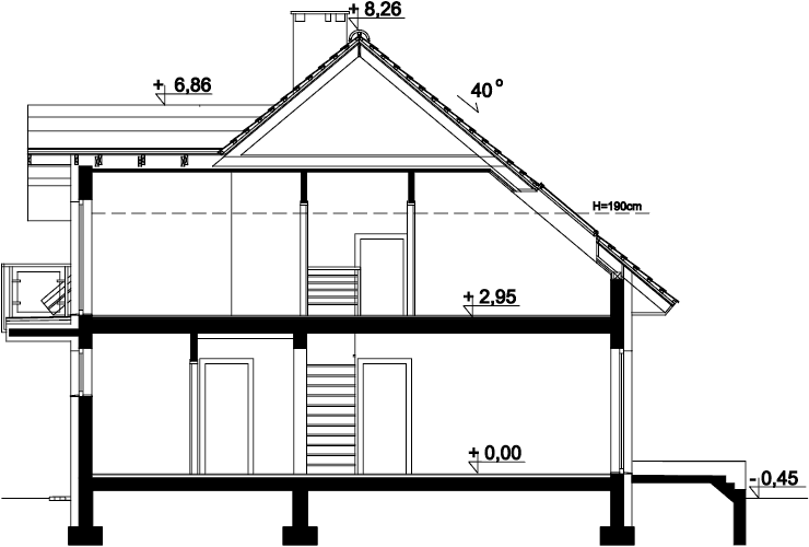 • Ściany zewnętrzne dwuwarstwowe z betonu komórkowego.