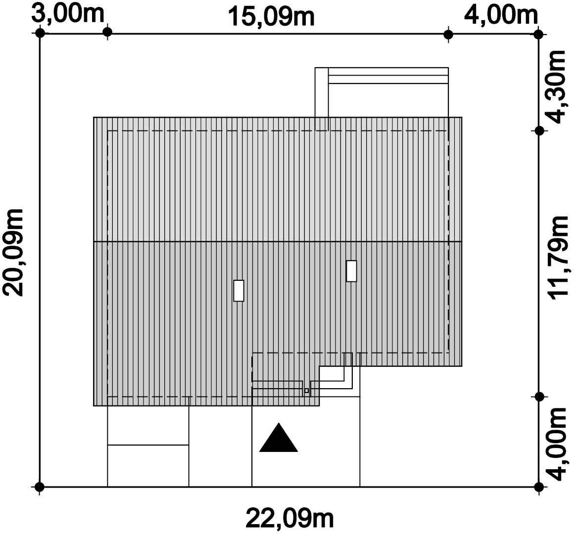 • Konstrukcja budynku - Pliki PDF: Rzut fundamentów, Rzut stropu, Rzut więźby dachowej.