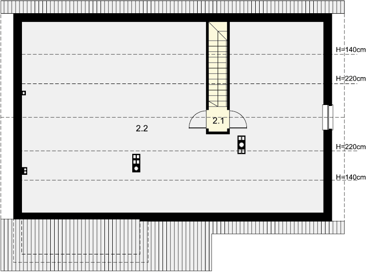 • Ściany zewnętrzne dwuwarstwowe z betonu komórkowego.