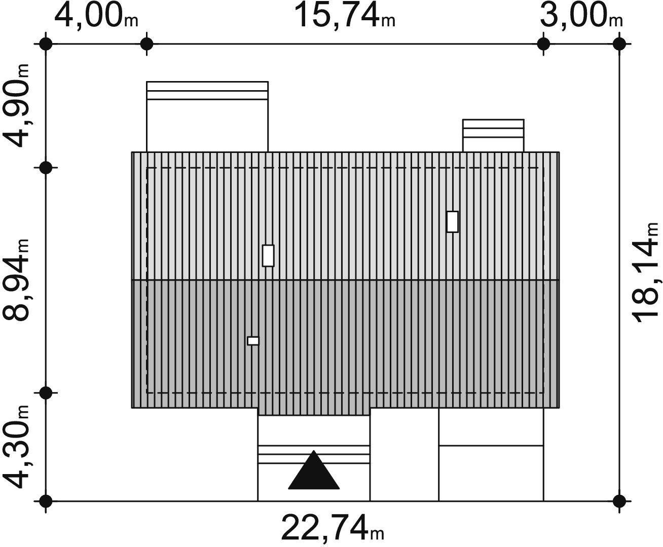 • Konstrukcja budynku - Pliki PDF: Rzut fundamentów, Rzut stropu, Rzut więźby dachowej.