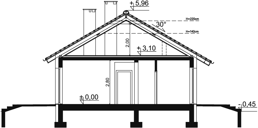 • Ściany zewnętrzne dwuwarstwowe z betonu komórkowego 24cm + 20cm styropianu.