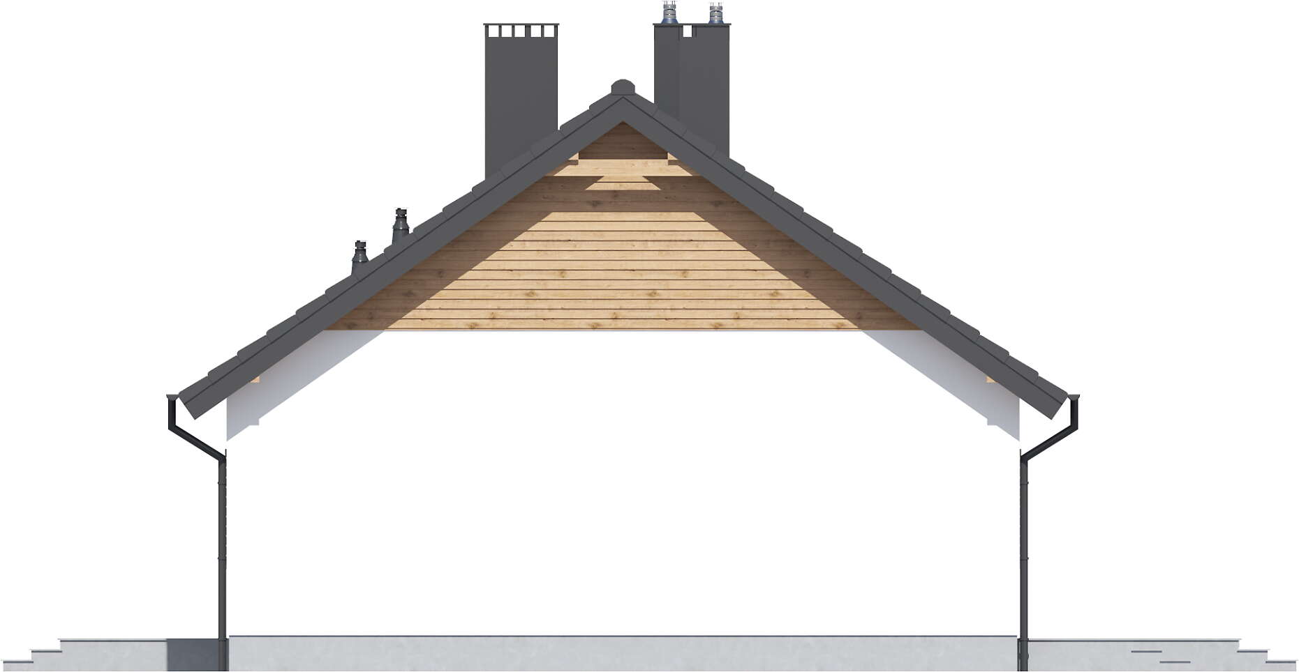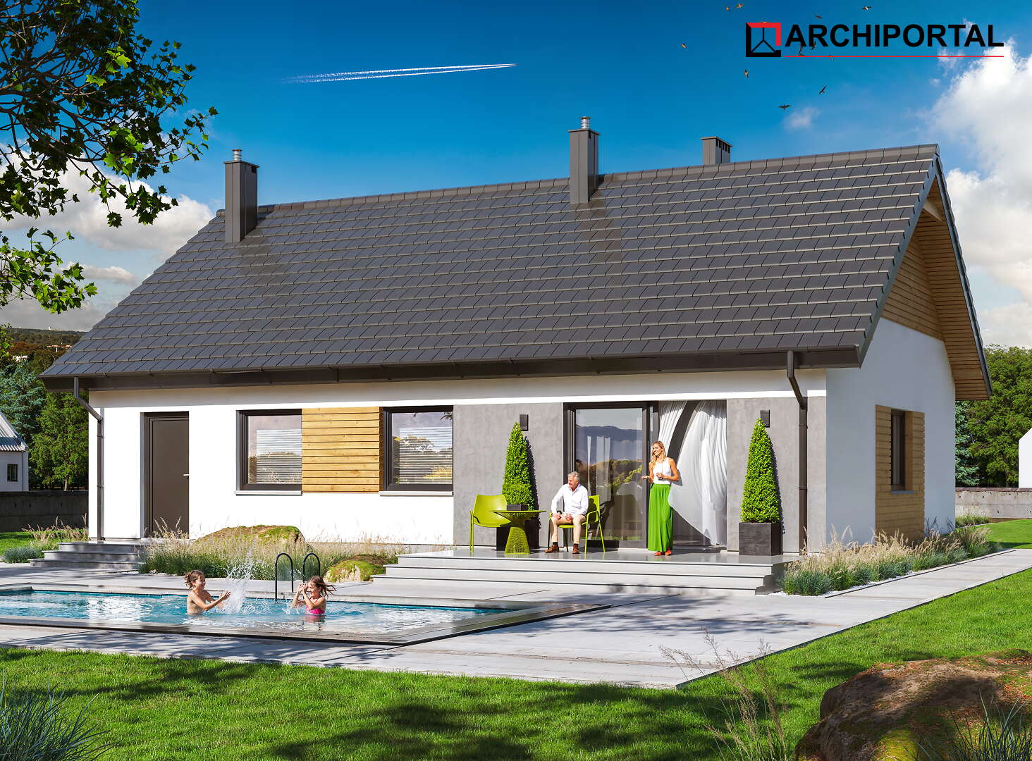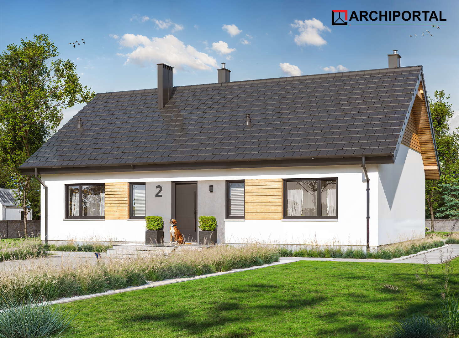 Dom ma prostą bryłę i nieskomplikowany dach, co będzie miało niewątpliwy wpływ na obniżenie kosztów budowy i późniejszej eksploatacji. Elewację budynku można wykończyć zarówno w klasycznym, jak również nowoczesnym stylu, stosując np. modne okładziny drewniane lub drewnopodobne.