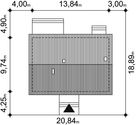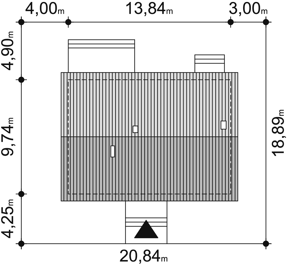 • Konstrukcja budynku - Pliki PDF: Rzut fundamentów, Rzut stropu, Rzut więźby dachowej.