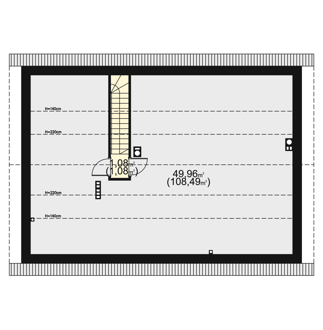 Rzut strychu 51,04 (109,57 m²) [przykładowa aranżacja]