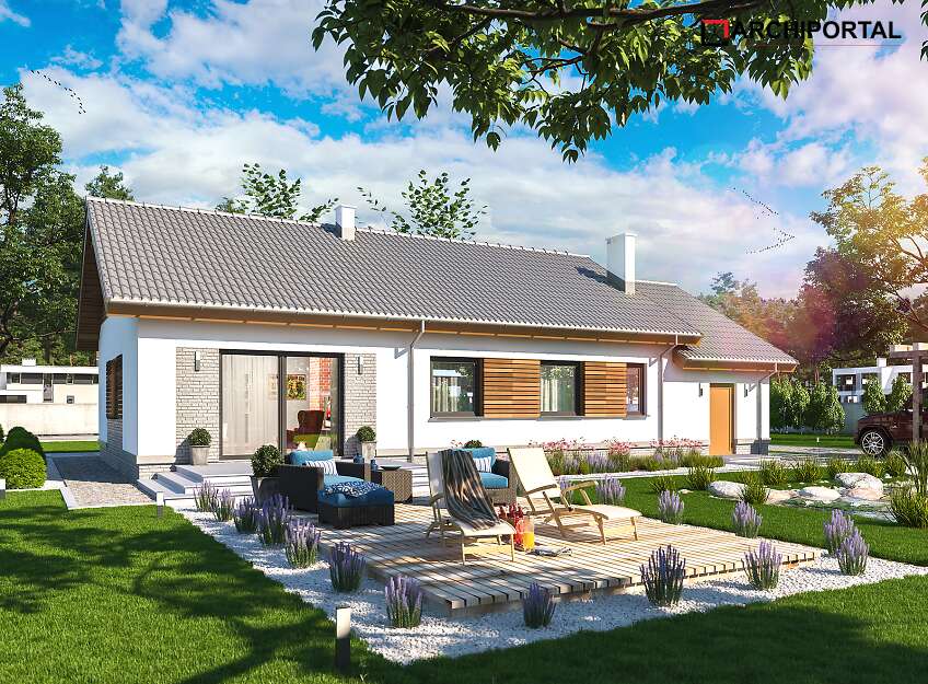 Elewację budynku można wykończyć zarówno w klasycznym, jak i nowoczesnym stylu. Prosta bryła i nieskomplikowany dach z pewnością będą miały duży wpływ na obniżenie kosztów budowy.