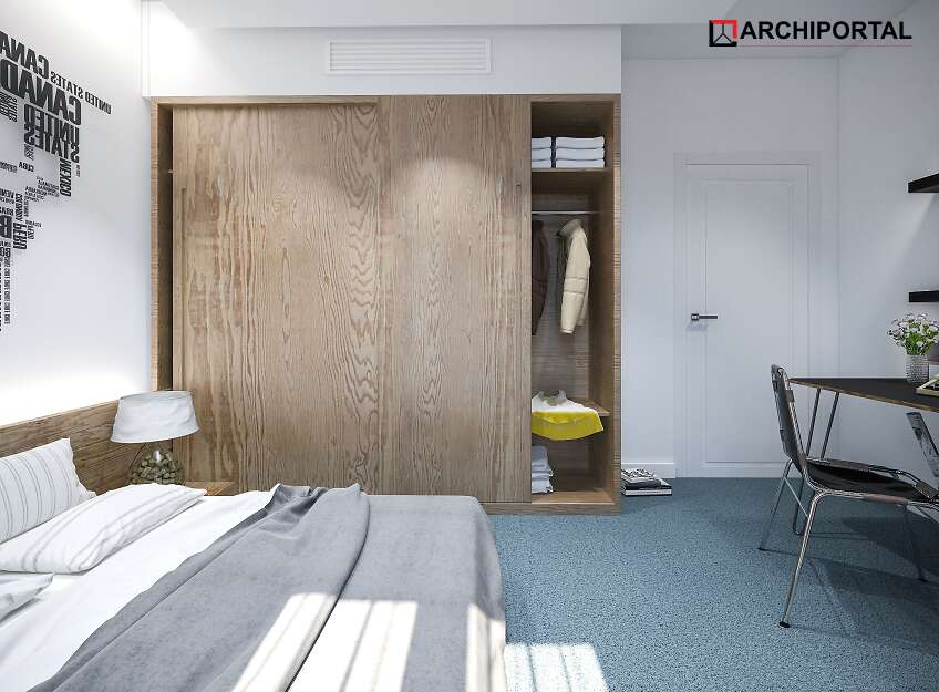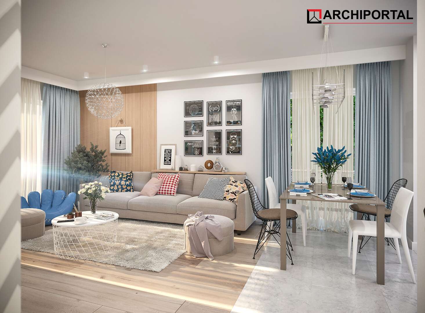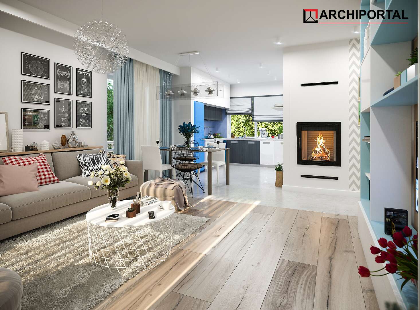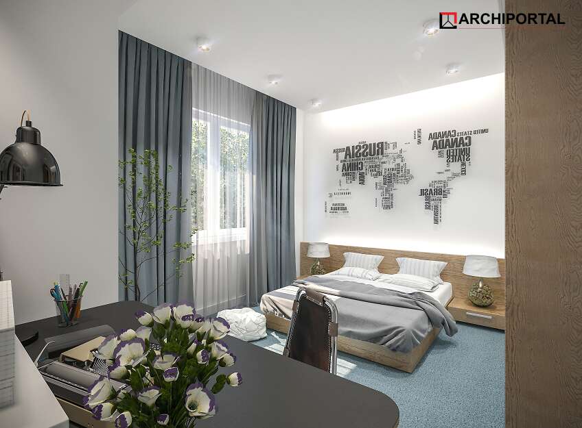 W korytarzu zaprojektowano schody składane prowadzące na strych. Dla przyszłych inwestorów będzie on przydatnym miejscem składowania różnych rzeczy. Dom ma prostą bryłę, dzięki czemu będzie tani w budowie i późniejszej eksploatacji.
