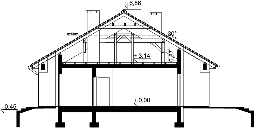 • Konstrukcja budynku - Pliki PDF: Rzut fundamentów, Rzut stropu, Rzut więźby dachowej.