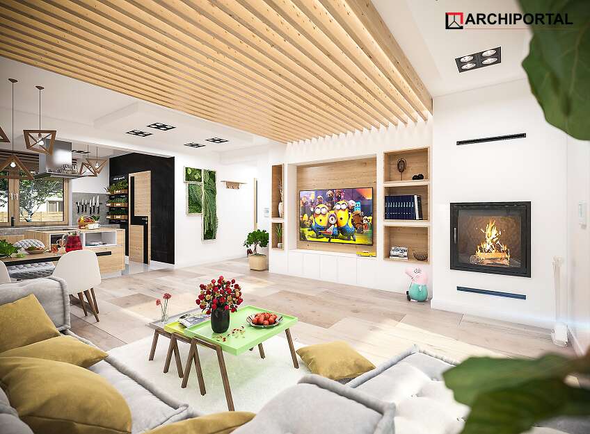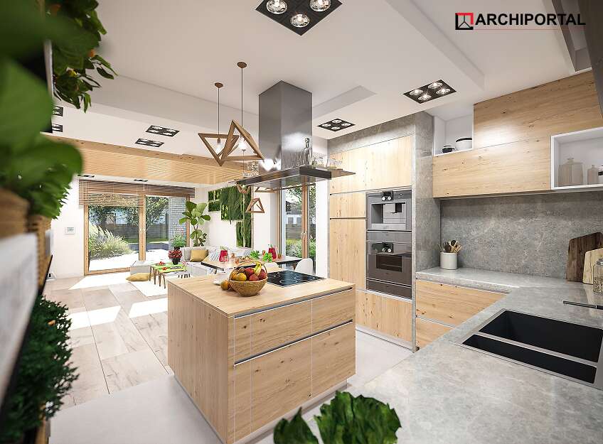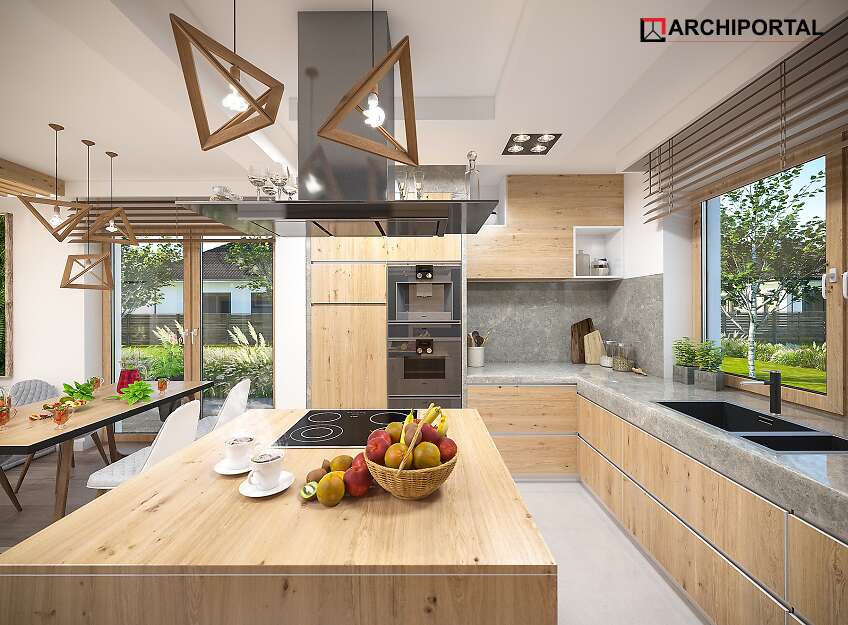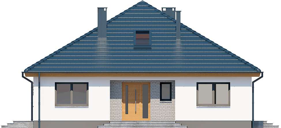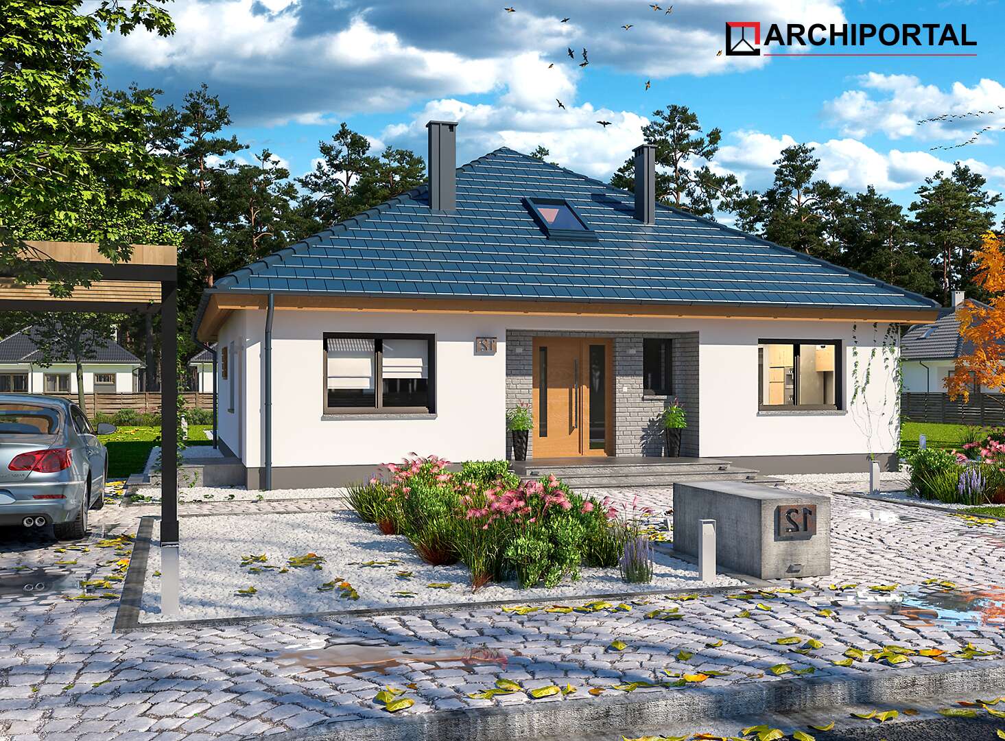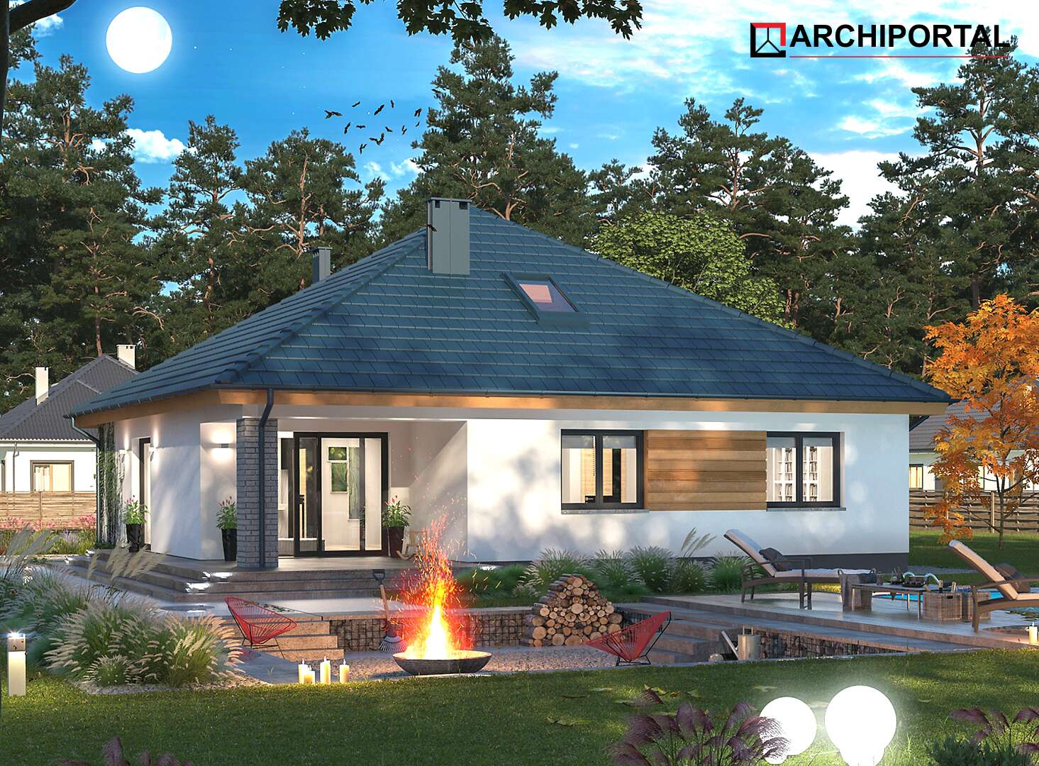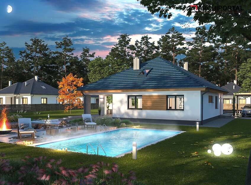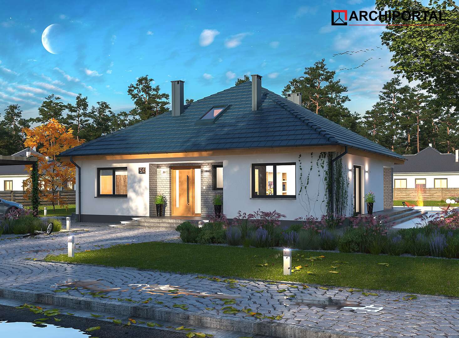 Projekt domu parterowego z dachem czterospadowym, którego rzut oparto na kwadracie. Budynek cechu duża funkcjonalność i dobre rozplanowanie pomieszczeń. Do dyspozycji mieszkańców jest: przestronny, jasny salon połączony z otwartą kuchnią, 3 ustawne pokoje, łazienka, toaleta, pralnia i spiżarnia. Wprost z wiatrołapu dostajemy się do dużej kotłowni z bezpośrednim wyjściem na zewnątrz. W domu zaprojektowano 2 rodzaje ogrzewania: GAZOWE oraz na PALIWO STAŁE. Dzięki takiemu zabiegowi, projektu nie trzeba przerabiać, inwestor sam decyduje, który rodzaj ogrzewania zastosuje w swoim domu - dokumentacja zawiera schematy i rozwinięcia instalacji c.o. i elektrycznych dla obydwu rozwiązań.