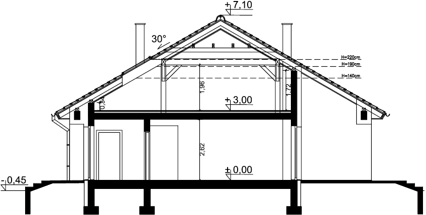 W budynku zaprojektowano solidny, ale tani w budowie strop TERIVA. Dostępne są także wersje projektu ze stropem tradycyjnym, drewnianym – TRYTON 3, stropem żelbetowym, wylewanym – TRYTON 3 B oraz więźbą dachową opartą na wiązarach – TRYTON 3 WZ.