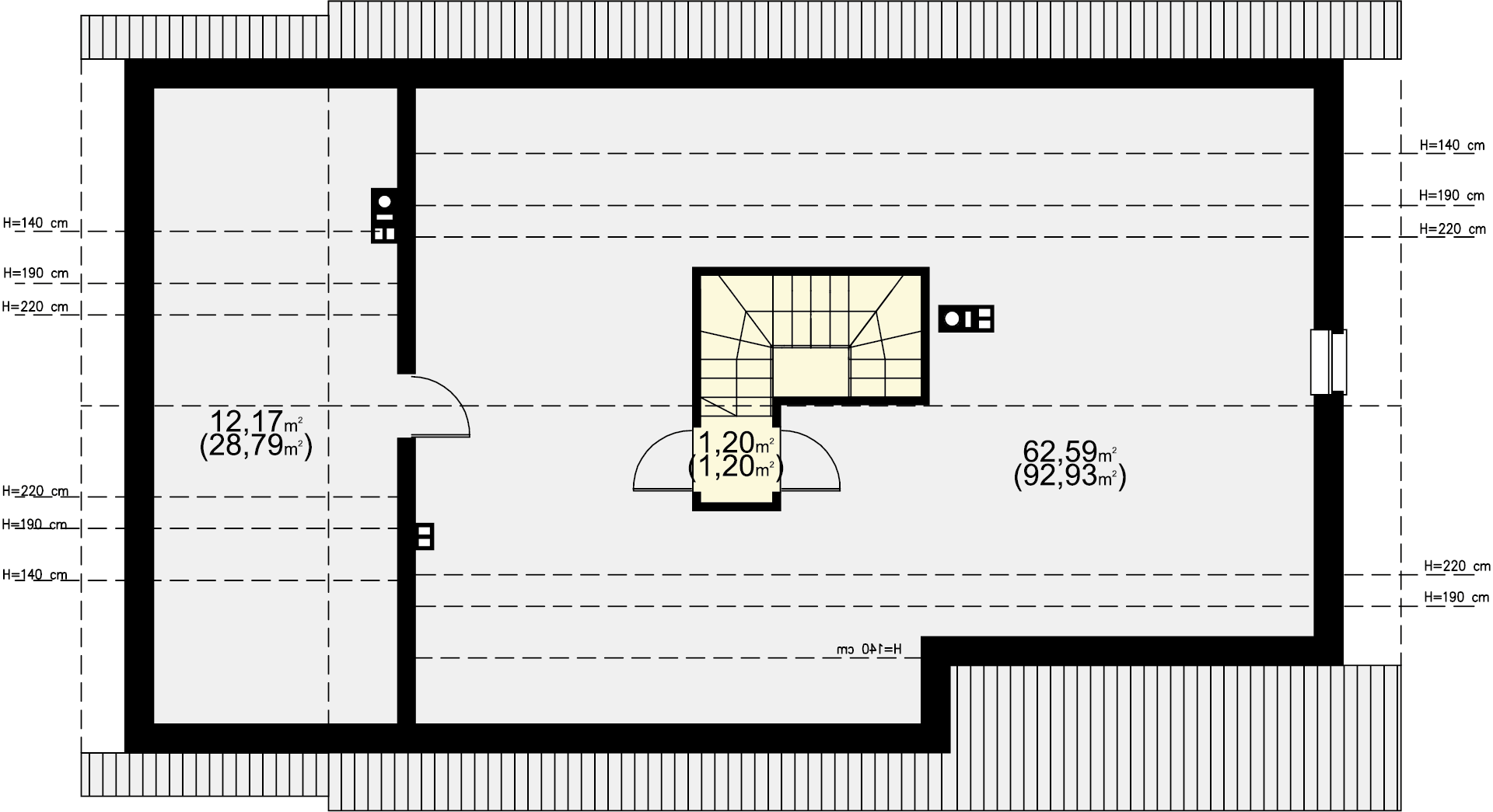 Rzut strychu (do aranżacji) 75,96 (122,92 m²)
