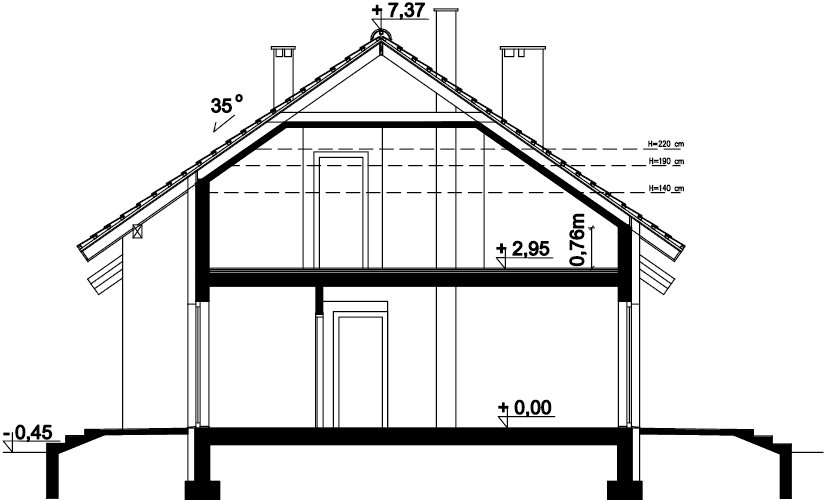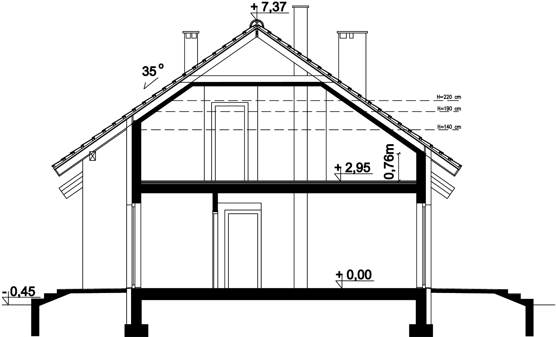 • Ściany zewnętrzne dwuwarstwowe z betonu komórkowego.